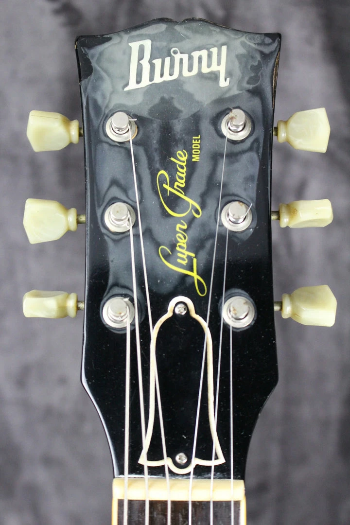 Summary: This Burny Super Grade Les Paul is a Japanese made copy from the 80’s. These are highly regarded for their excellent build quality. PAF style tones and close replication to the famed 50’s Les Pauls. This Burny has Seymour Duncan humbuckers and was just setup and restrung with a new set of 10-gauge strings. It is a fantastic player and ships in an aftermarket case.