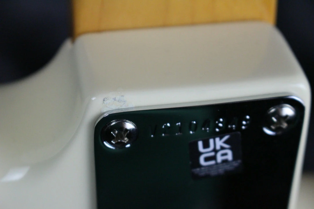 Neck: Maple with a rosewood fingerboard, 25.5” scale length, 1.650” nut width, 9.5” radius, thick “C” shape, 21 vintage tall frets.