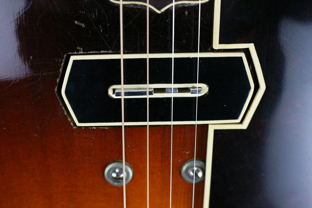 Pickups/Hardware: Original Charlie Christian pickup (steel magnet blade), trapeze tailpiece with floating bridge, tortoise pickguard, non-original tuning keys.