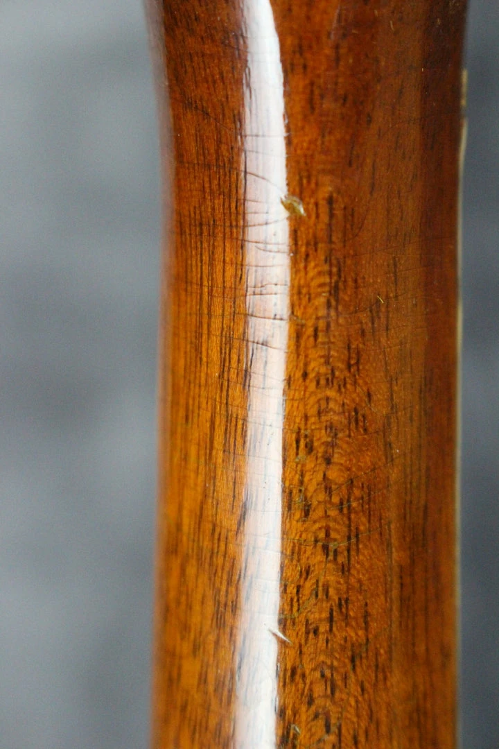Cosmetics: This instrument has wear that is consistent with a guitar from the 1930’s. It has various nicks, dings, and scratches throughout. The binding is in great shape. The frets have worn down, but it is still very playable. There is a ring around the high strings tuning key where it looks like a long string end scraped the finish. Overall, this instrument is in great shape, and it sounds amazing. (See Photos Please)