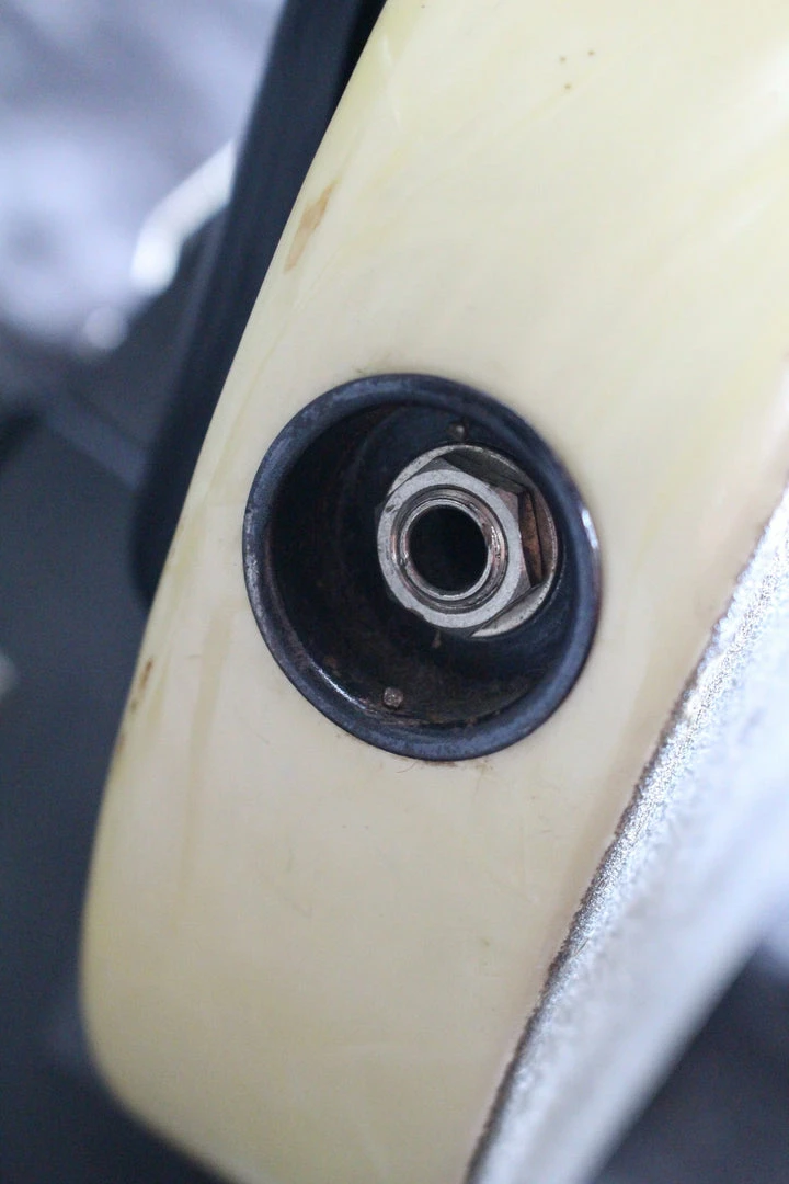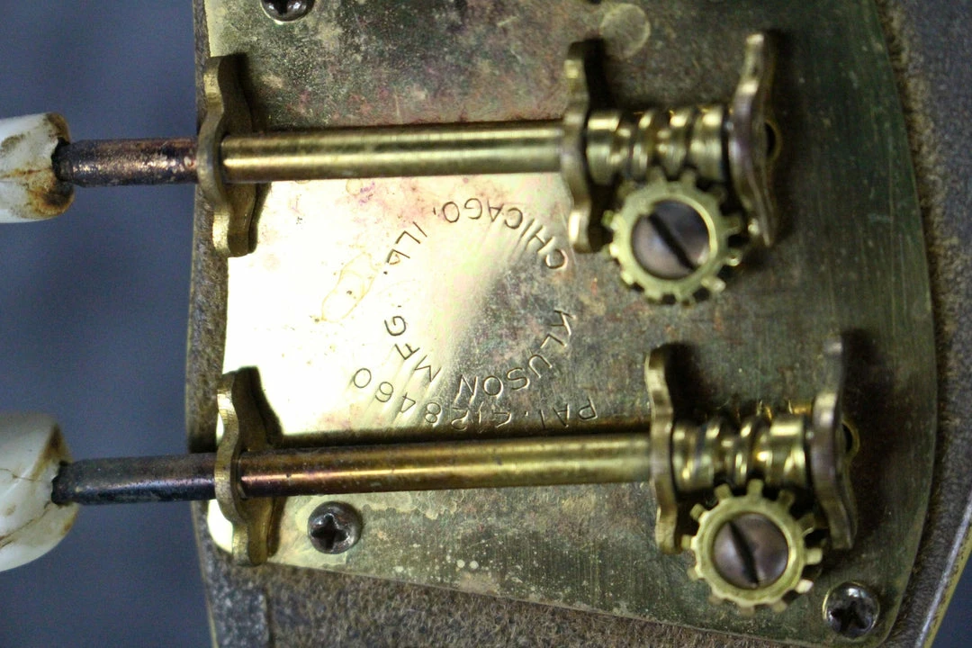 This lap steel is in good condition and has wear that is consistent with an instrument from the 1950’s. The finish is peeling of on the sides of the necks a little. The bridge cover has been cracked off near the middle of the instrument on the left side. There are some small holes on the back of the body (See Photos Please). The pickup selector switch tip is missing. The volume knobs have been replace with black telecaster style dome knobs. The Kluson tuning keys are still in good shape as well. This pedal steel ships in the original hard shell case. professionally packaged, and fully insured.