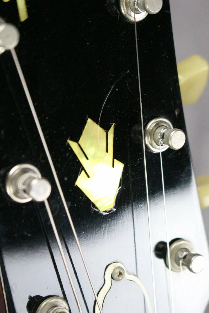 Cosmetics: This guitar has wear that is consistent with an instrument from the early 1960’s. There are small dents and dings on the body/neck/headstock (Please See Photos). There are light surface scratches throughout on the body. The nickel hardware has aged beautifully. The pickguard has shrunk just a little. This was hard to photograph, but if you’d like to see more pictures, please feel free to ask. There is some light checking on the back of the neck. On the face of the headstock, there is a circle around the “A” string tuning peg where a string has scratched the finish. On the back of the headstock, there is a small crack near the “E” string tuning key that runs up to the “A” string tuning key. It appears to be structurally sound (Please See Photos). There is small scuff on the back edge of the body near the volume/tone controls. This guitar is in great shape and plays very well.