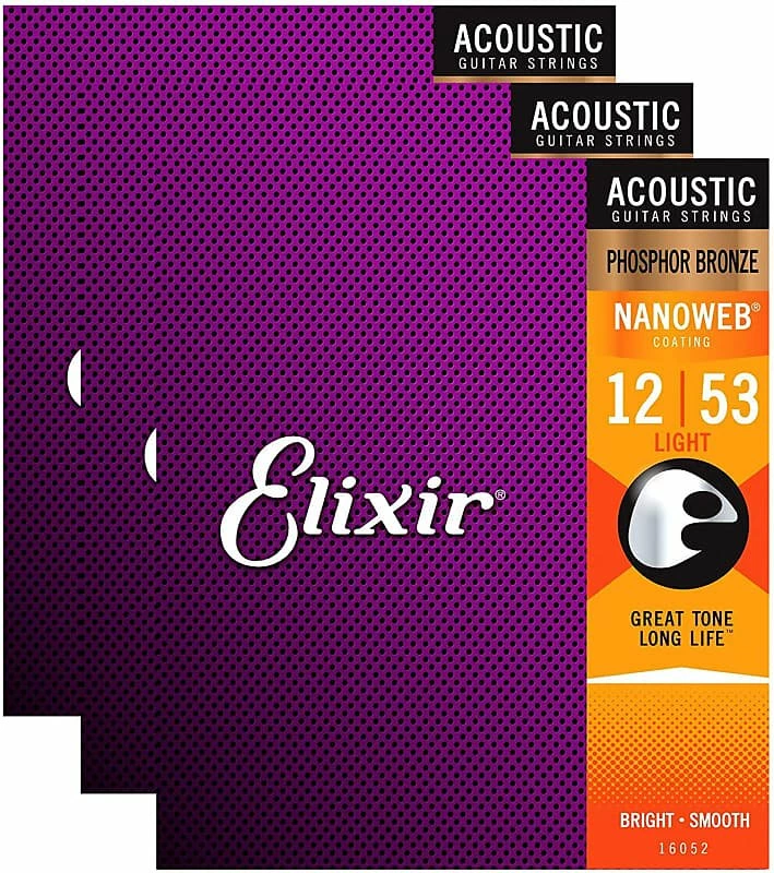 Elixir®Strings Acoustic Phosphor Bronze with NANOWEB ® Coating deliver distinctive phosphor bronze warmth and sparkle together with extended tone life.
