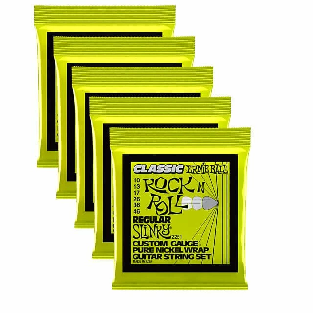 Empire Guitars Accessories Ernie Ball Slinky Classic Rock N Roll Pure Nickel Guitar Strings 10-46- 5 Pack *Free Shipping In The US*