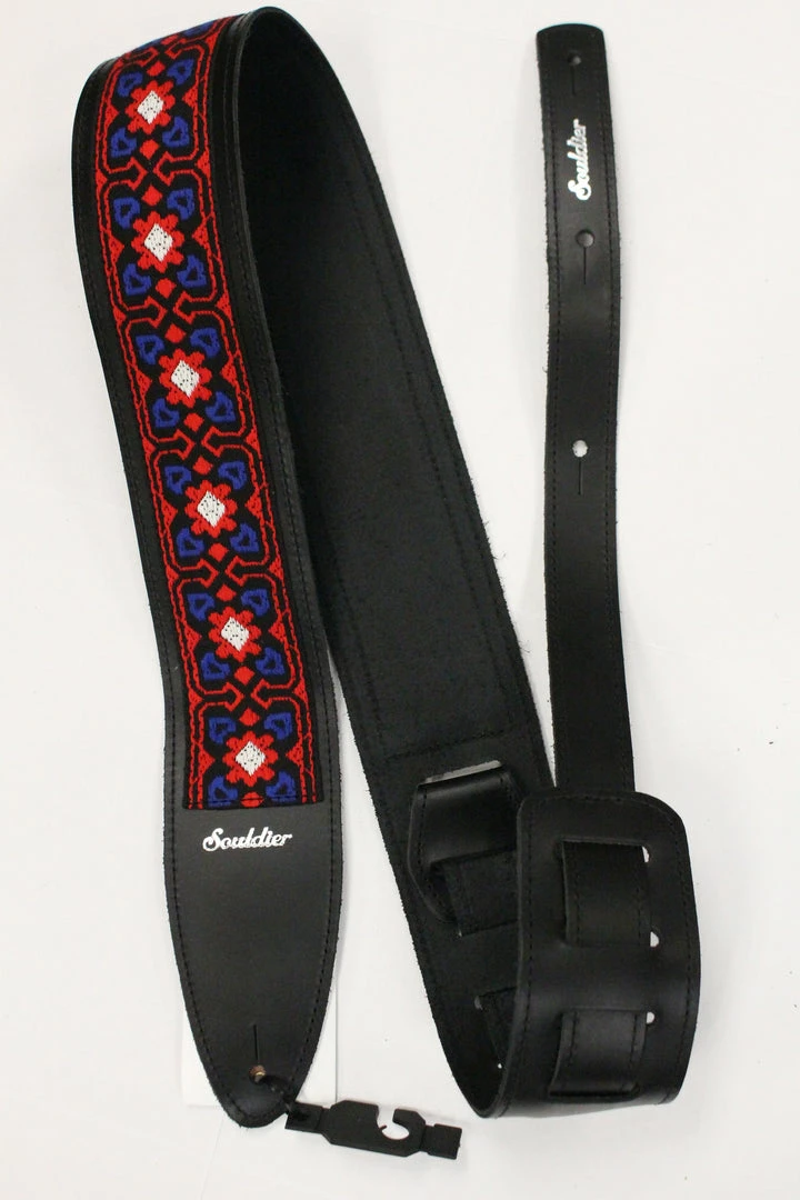This is 2.5″ wide Souldier Red, White, & Blue Fillmore guitar strap.