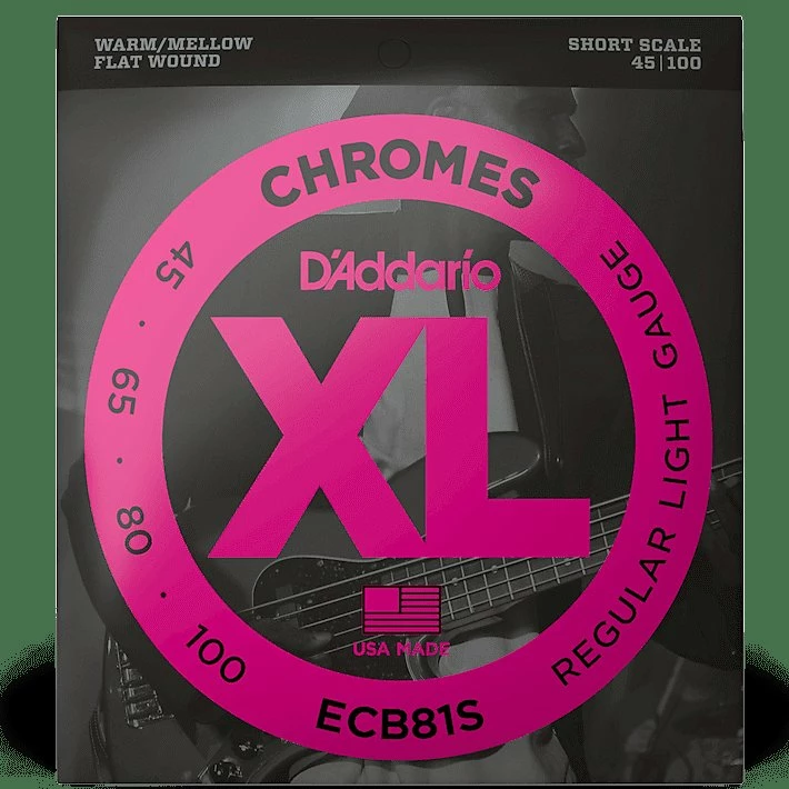 ECB81S is a light gauge flat wound string set for short scale electric