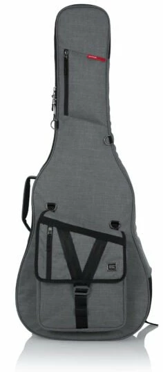 The Gator Case GT-ACOUSTIC-GRY is a Transit Series Gig Bag Designed to Fit Acoustic Guitars. Weather Resistant Blended Fabric Exterior in Light Grey. Thick Rubber Tread on Bottom of the Bag Prevents Wear and Protects from Small Puddles to Spilled Drinks. 20mm Thick Foam Padding Covered with Plush Micro-Fleece Lining.