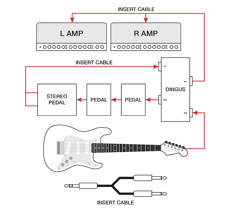 Dingus ¼” Feed-Thru adds easy-access audio cable connectivity to a Voodoo Lab Dingbat® pedalboard. This handy add-on works for both mono and stereo connections and installs beneath either side of a Dingbat pedalboard. From simple guitar and amp connections to more complex stereo and effects loop setups, Dingus makes cable routing clean and convenient.