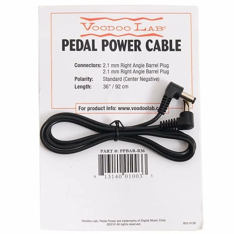 The Voodoo Lab PPBAR 2.1mm Right Angle Barrel Cable – 36″ is a power cable designed for effect pedals that is commonly used with items like: Boss, MXR/Dunlop, ToneCore Line, TC Electronic Nova and more.
