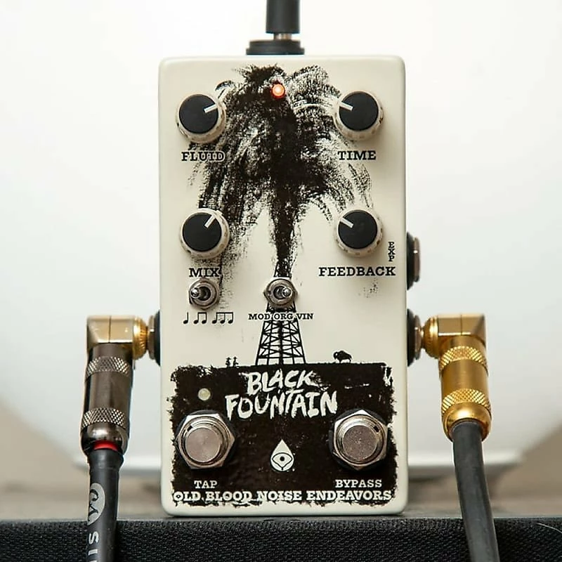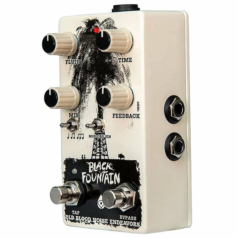 After nearly six years of production, Old Blood Noise Endeavors has expanded their original pedal, the Black Fountain Oil Can Delay. The Black Fountain captures the sound of vintage oil can delay units, which processed the instrument signal through actual oil in order to create warm, modulated repeats unlike anything else. This previously rare and unwieldy sound is now available in the Black Fountain, which features three modes and ample control over the signal.